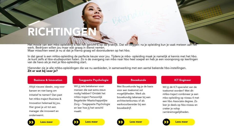 Hieronder zie je alle mhbo-opleidingen die we nu aanbieden, in samenwerking met een aantal bekende hbo-instellingen.