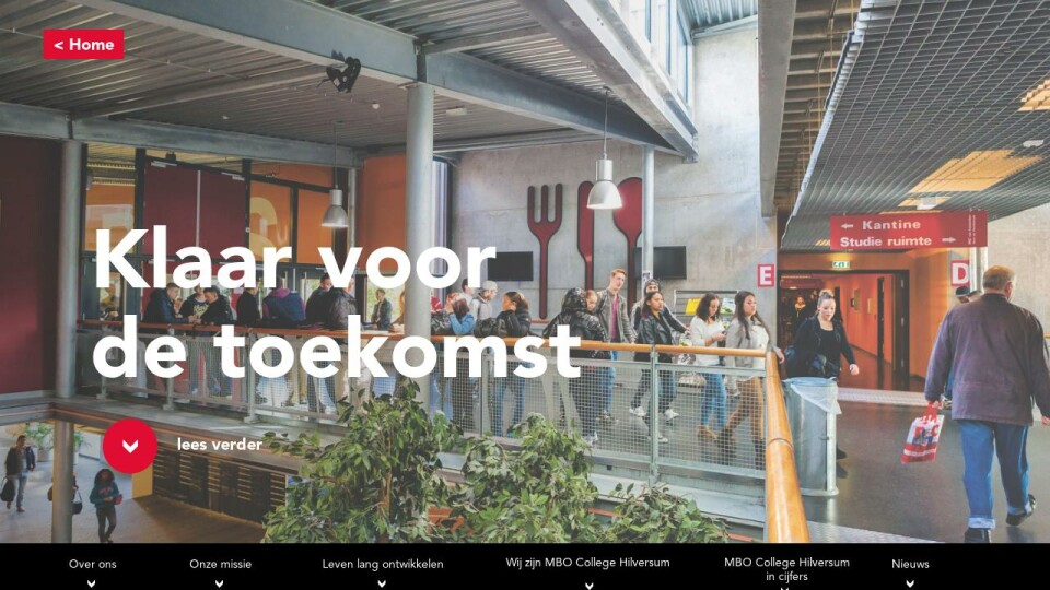 MBO College Hilversum biedt een onderwijsomgeving waarin studenten zich ontdekkingsgericht kunnen ontwikkelen omdat we geloven dat dit de beste garantie geeft op een goede aansluiting op de maatschappij, de arbeidsmarkt of vervolgonderwijs. Wij leven in een wereld waarin verandering een constante is, waardoor mensen wendbaar, weerbaar en veelzijdig moeten zijn. Dit vraagt om zelfbewuste studenten met een nieuwsgierige blik, lef, een leergierige houding en zelfsturend vermogen. Studenten die voorbereid zijn op hun volgende stap, die hun positie innemen en een bijdrage kunnen leveren aan de maatschappij en de arbeidsmarkt, nu en in de toekomst. Het is onze visie dat we studenten kunnen opleiden tot toekomstbestendige mensen door ze ruimte en ondersteuning te geven om zelf te ontdekken wie ze zijn, waar hun kracht ligt en welke beroep het beste bij hen past. In ons college kunnen studenten op onderzoek uit om te leren ontdekken hoe zij willen en kunnen bijdragen aan de wereld om hen heen. Hierdoor ontwikkelen zij zich tot wendbare mensen die in toekomstige situaties vorm kunnen geven aan kansen en mogelijkheden, op zowel persoonlijk als professioneel vlak.