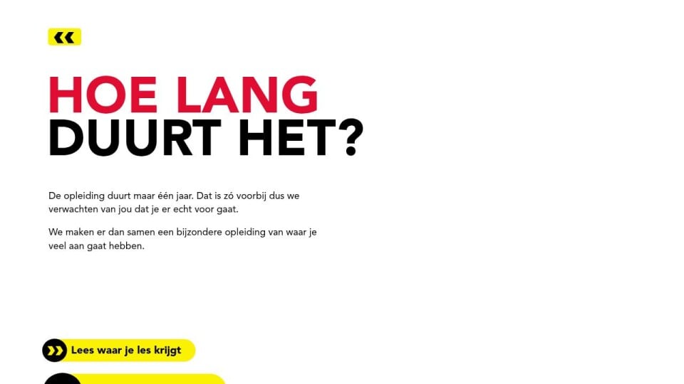 De opleiding duurt maar één jaar. Dat is zó voorbij dus we verwachten van jou dat je er echt voor gaat.