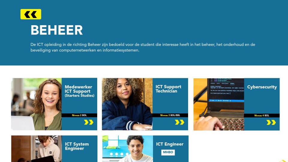 De ICT opleiding in de richting Beheer zijn bedoeld voor de student die interesse heeft in het beheer, het onderhoud en de beveiliging van computernetwerken en informatiesystemen.